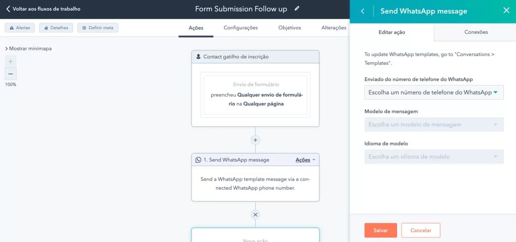 - Automatização eficiente: A HubSpot permite que você automatize o envio de mensagens do WhatsApp com base em gatilhos específicos, economizando tempo e esforço;