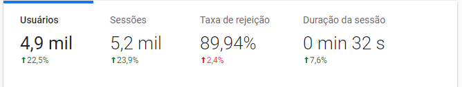 Na página inicial do seu gerenciador do Google Analytics já é possível ter uma visão geral do seu bounce rate.