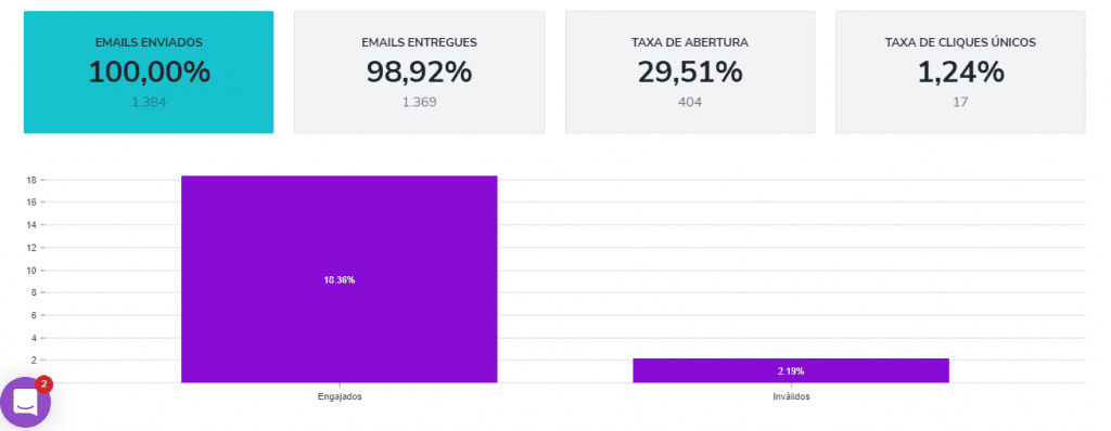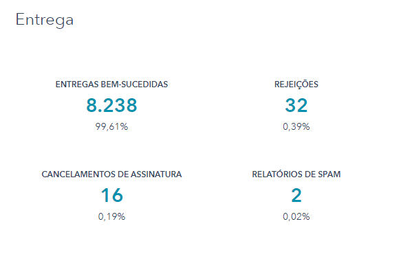 Para mais informações, é possível clicar em Ações > Estatísticas e ter um diagnóstico mais detalhado sobre o envio.