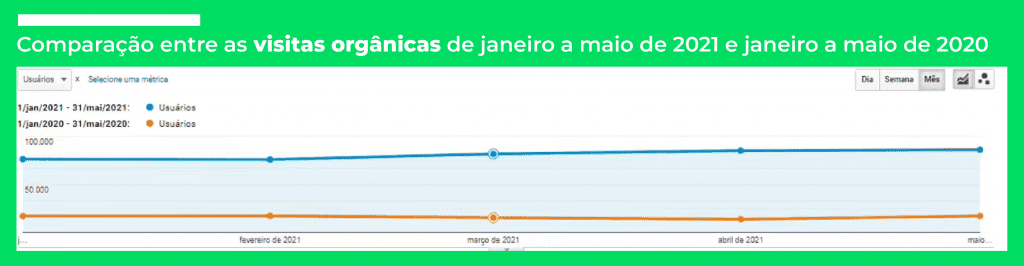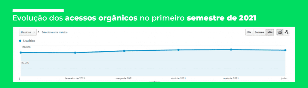 O aumento do tráfego orgânico ocorreu gradativamente. Através de melhorias e otimizações em SEO, o número de visitantes cresce a cada mês.