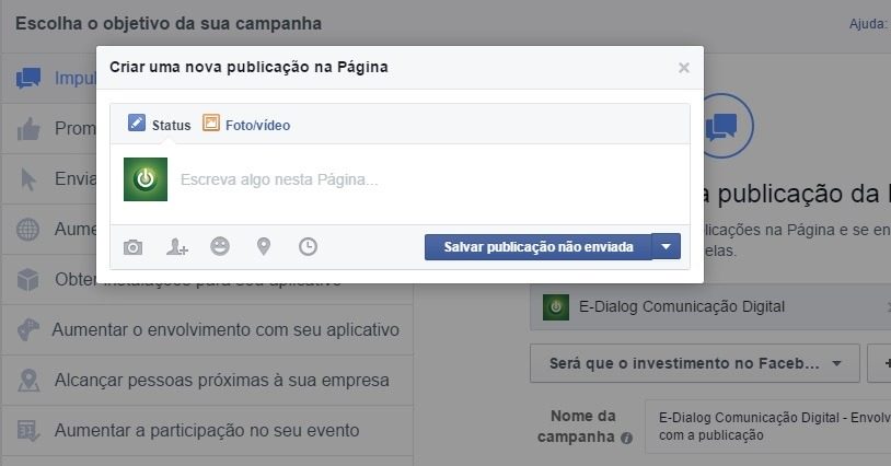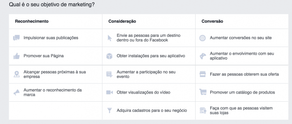 - Selecione o objetivo da campanha: escolha uma opção que permita anunciar no Instagram. As opções são: Impulsionar Publicações, Enviar Pessoas para o Site, Obter Visualizações de Vídeo e Converter Vendas Online. Certifique-se de que o objetivo selecionado seja compatível com a exibição no Instagram.