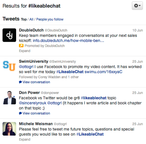 Você pode encontrar chats específicos de um assunto que relacionam -se com o seu ramo. É o caso do #Likeablechat, um bate-papo semanal que oferece dicas de mídia social e é uma oportunidade de interagir com pessoas da sua área.