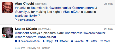 Ao participar de um bate-papo no Twitter é importante ser um bom participante, isso ajudará a atrair atenção que você deseja para o seu negócio. Use a Hashtag definida pelo host, pergunte e responda com informações perspicazes e lembre- se você não está ali para lançar o seu produto. Os chats são um lugar para você estabelecer liderança e credibilidade.