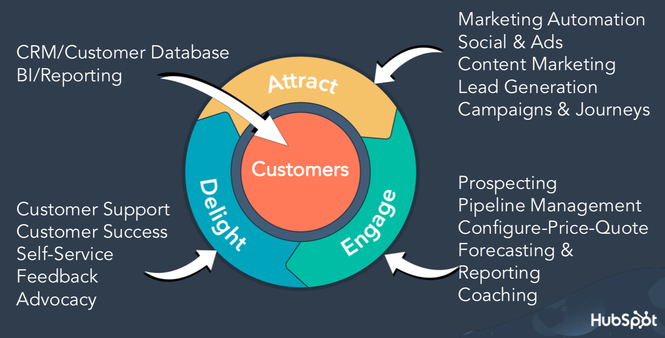 Um conceito que exprime bem isso é o Flyhwheel da Hubspot – Marketing, Vendas e Serviços integrados, gerando um fluxo contínuo de Demos/Trials que se convertam em negócios.