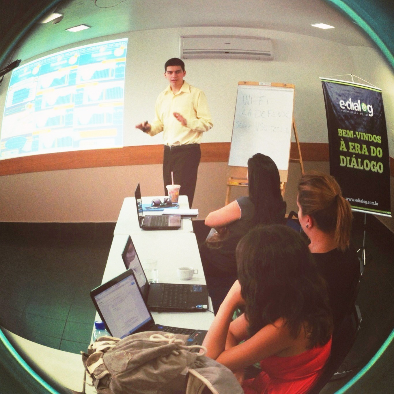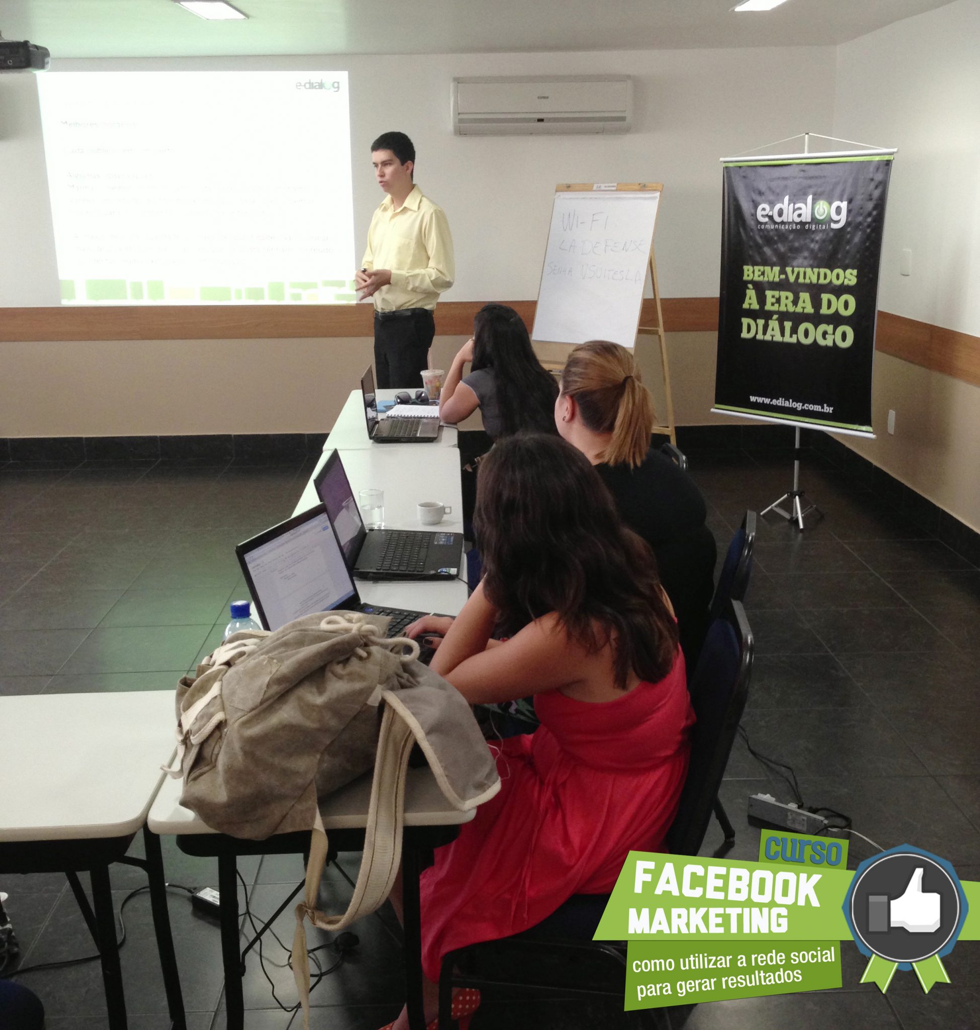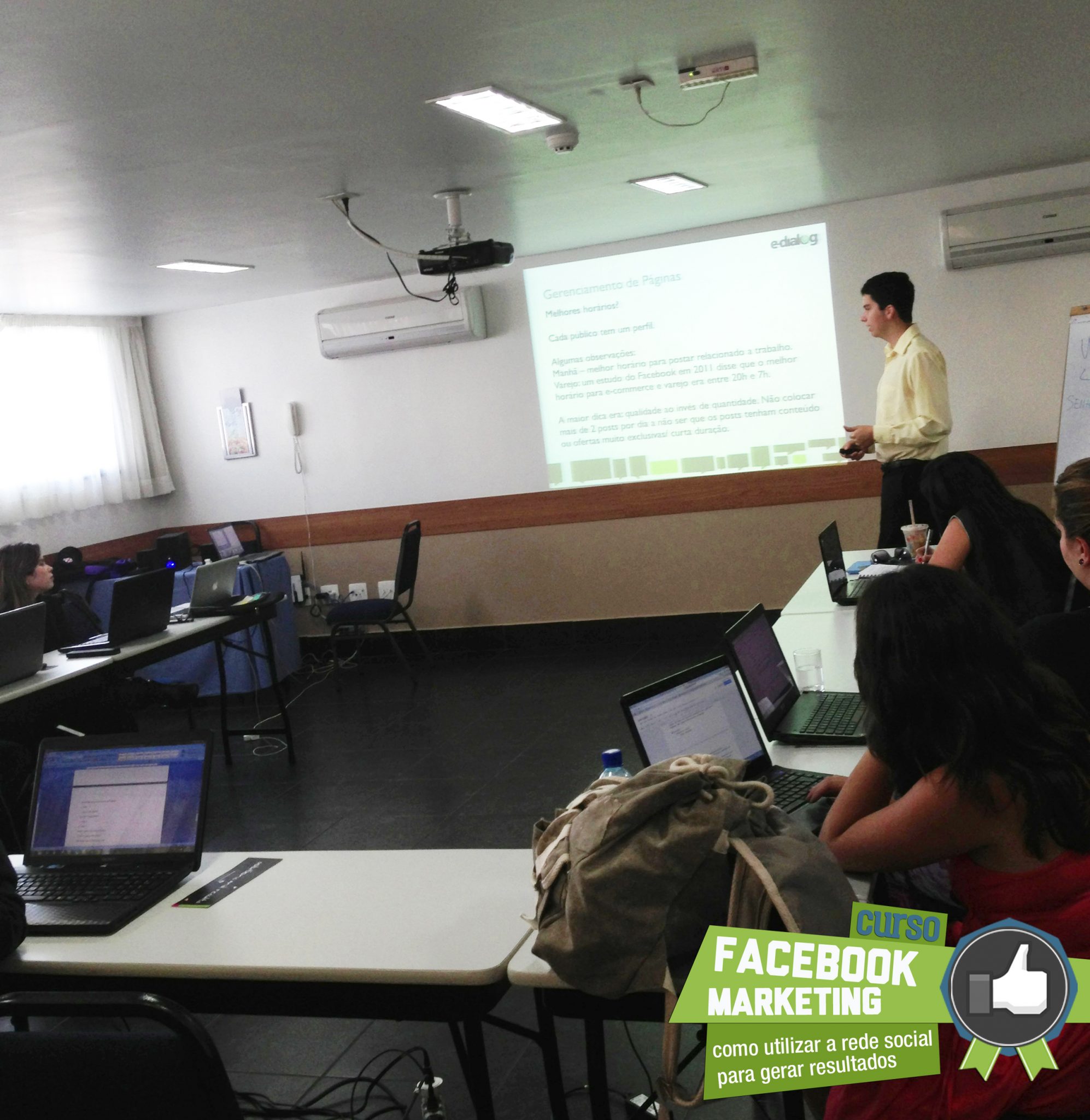 La primera Marketing en Facebook de E-Dialog fue un éxito. Impartido por el fundador de la agencia, Renan Caixeiro, el curso trató temas como "Introducción al marketing en Facebook", "Dinámicas de Facebook", "Por dónde no empezar", "Gestión de páginas", "Gestión de anuncios", "Planificación de aplicaciones y juegos" y "Planificación de marketing sobre Facebook y las métricas".