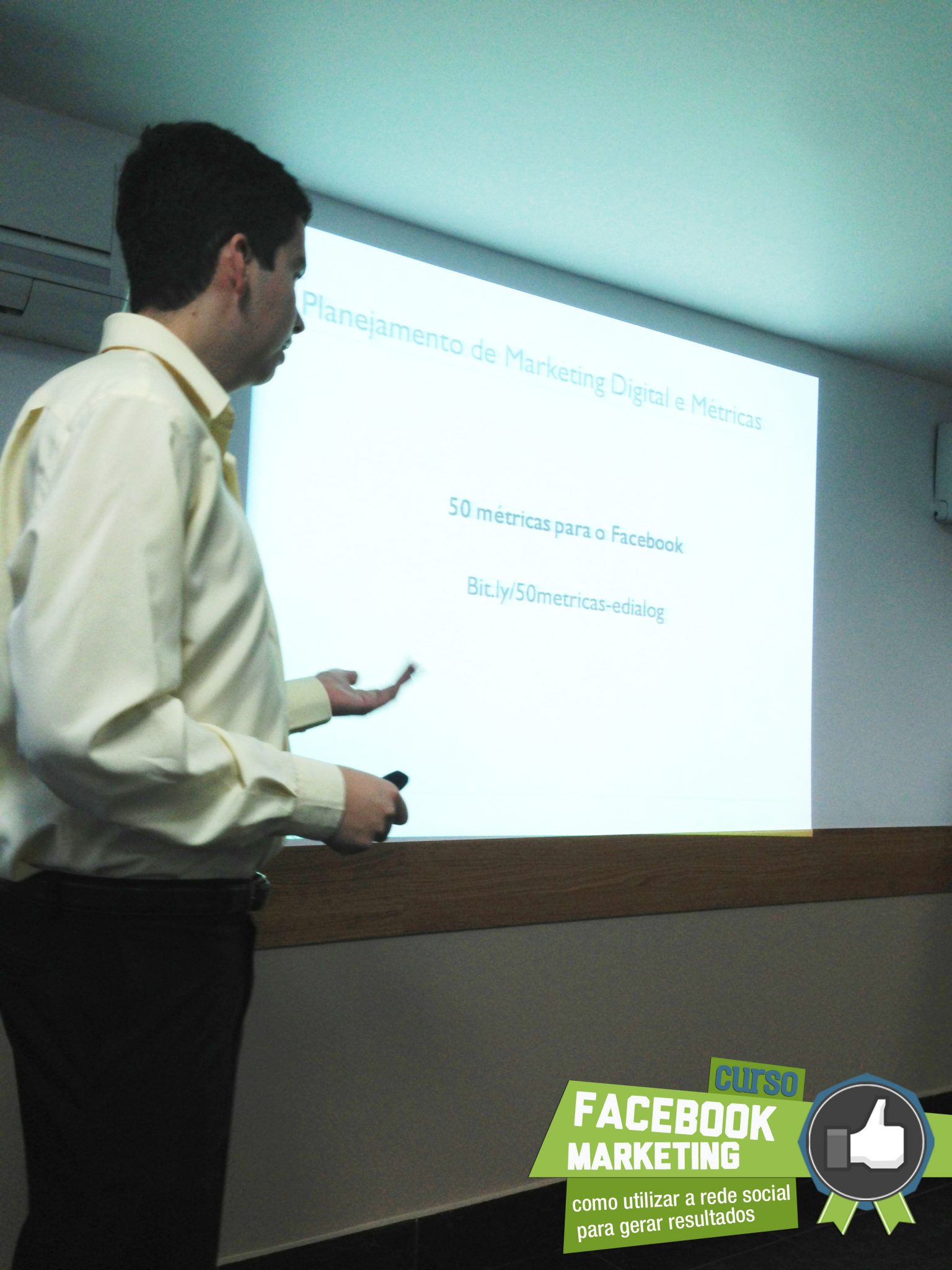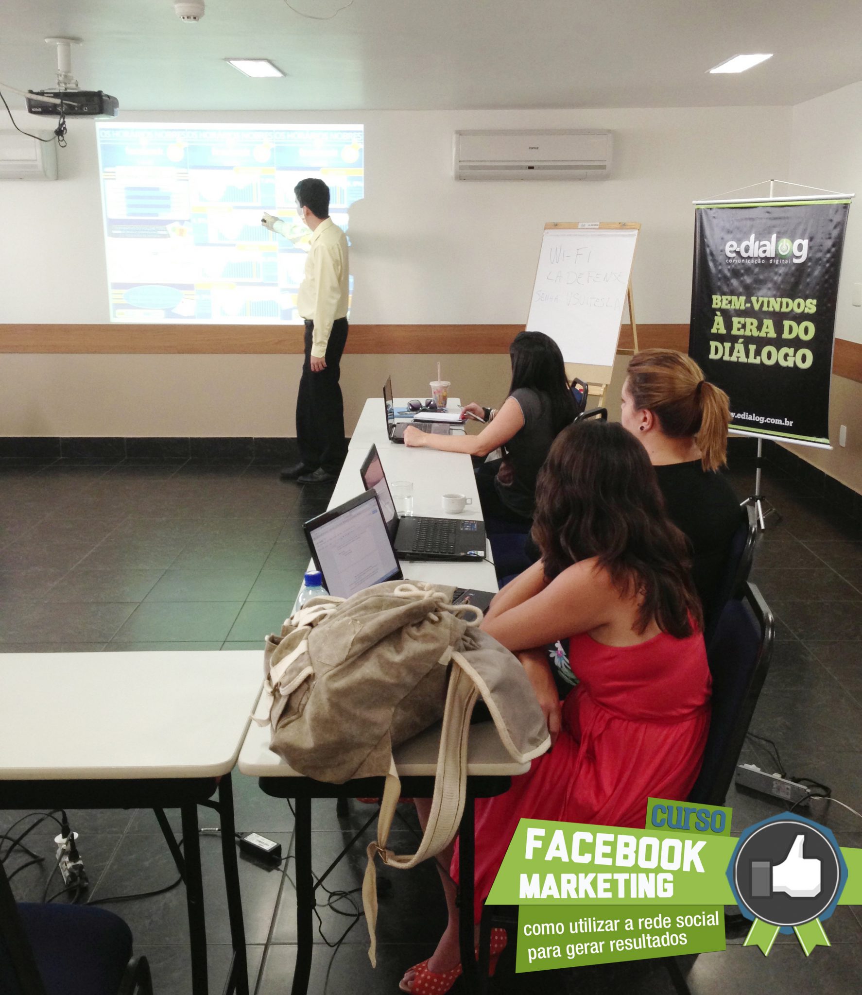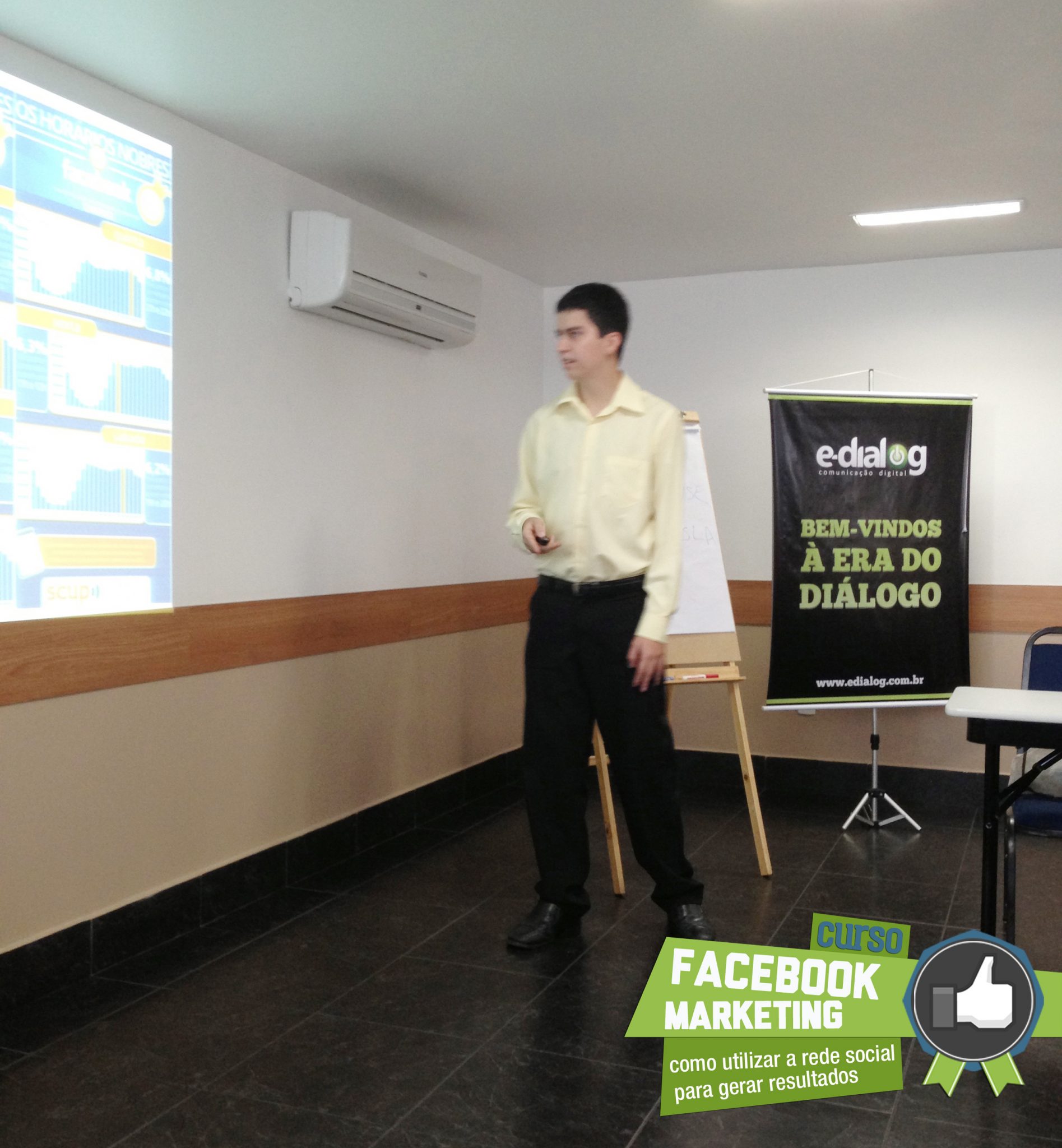 O primeiro curso de Facebook Marketing da E-Dialog foi um sucesso! Ministrado pelo fundador da agência, Renan Caixeiro, o curso contou com tópicos como “Introdução ao Marketing no Facebook”, “Dinâmica do Facebook”, “Por onde não começar”, “Gerenciamento de Páginas”, “Gerenciamento de Anúncios”, “Planejamento de Aplicativos e de Jogos” e “Planejamento de Marketing no Facebook e Métricas”.