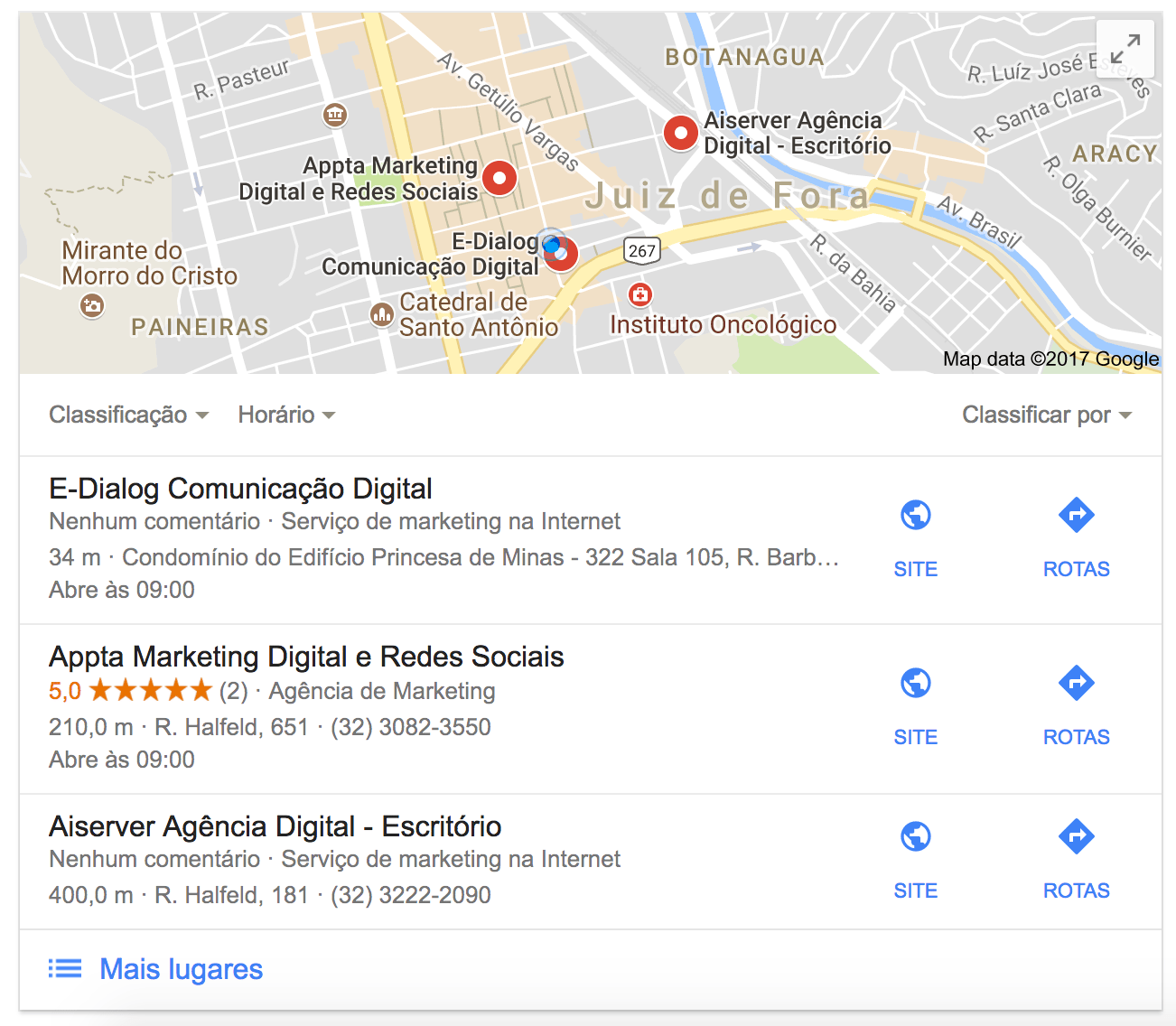 Aqui está um exemplo de Pacote Local de “agência de marketing digital em Juiz de Fora”