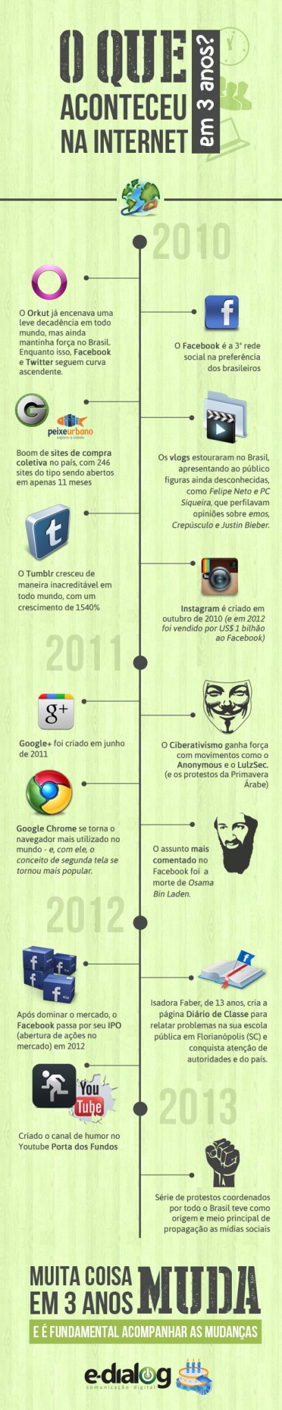 A E-Dialog completou 3 anos de vida. E muita coisa aconteceu na Internet nesses 3 anos. O mundo mudou bastante por conta das redes sociais, novos recursos interativos chegaram a esse mundo (como os Hangouts do Google, por exemplo), redes subiram e desceram em popularidade.