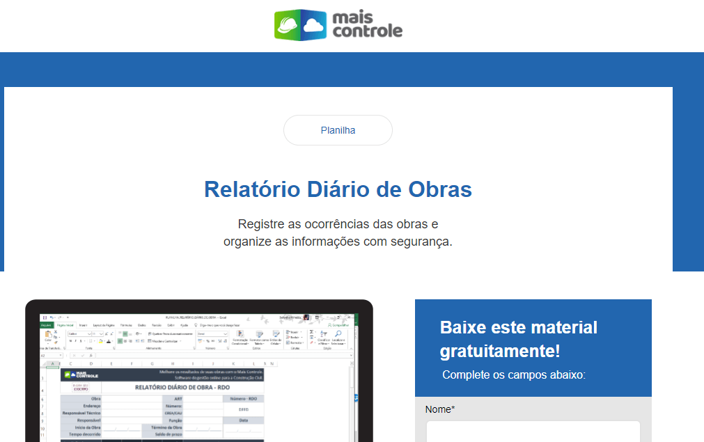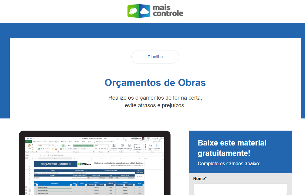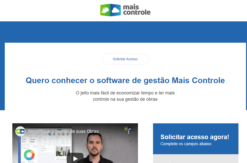 A Mais Controle é um software para gestão de obras. Tem como objetivo facilitar o dia a dia de quem gerencia uma obra, promovendo integração de processos, transparência e rapidez. Além disso, quem contrata uma obra com uma empresa que possui essa ferramenta, dispõe de um relatório primoroso, com detalhamento de gastos e processos.
