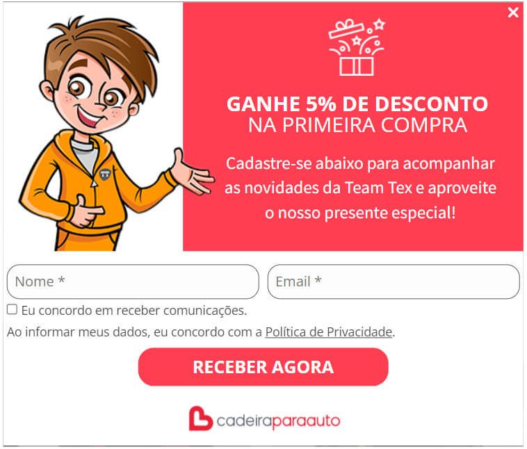 Pop-up com entrega de 5% de desconto no e-commerce: