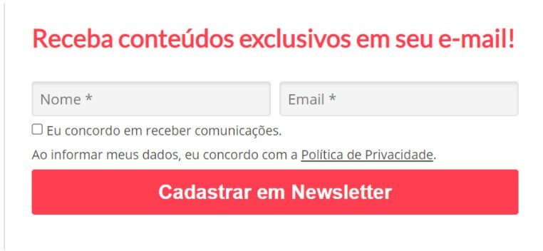 Formulário de cadastro em newsletter anexado em artigos de blog da Team Tex: